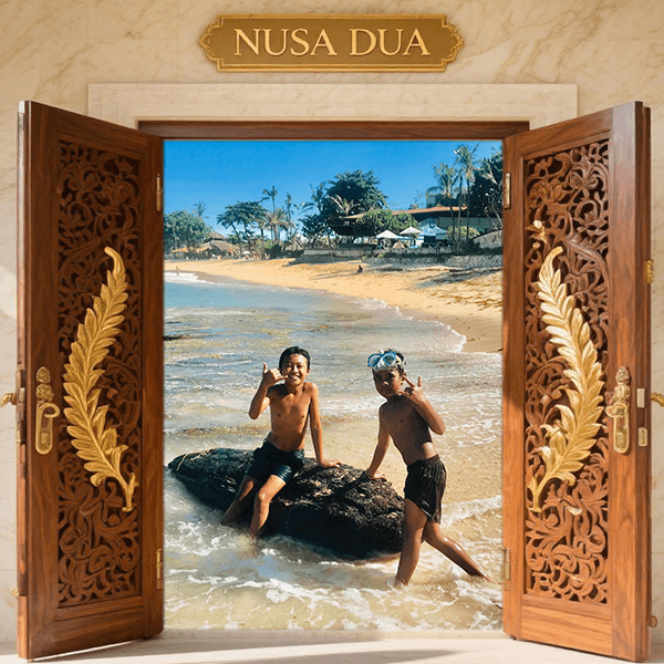 Nusa Dua, élégante station balnéaire du sud de Bali, séduit par ses plages, ses restaurants haut de gamme en bord de mer et son centre commercial.