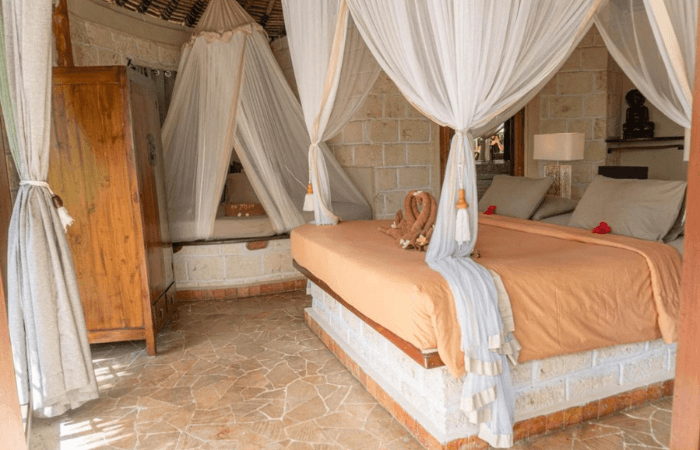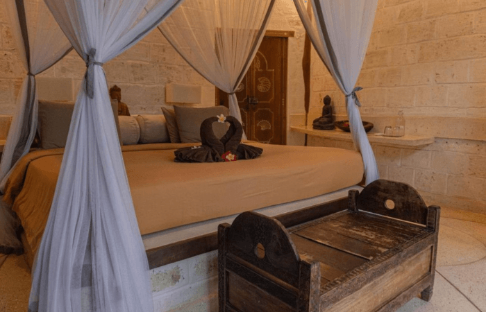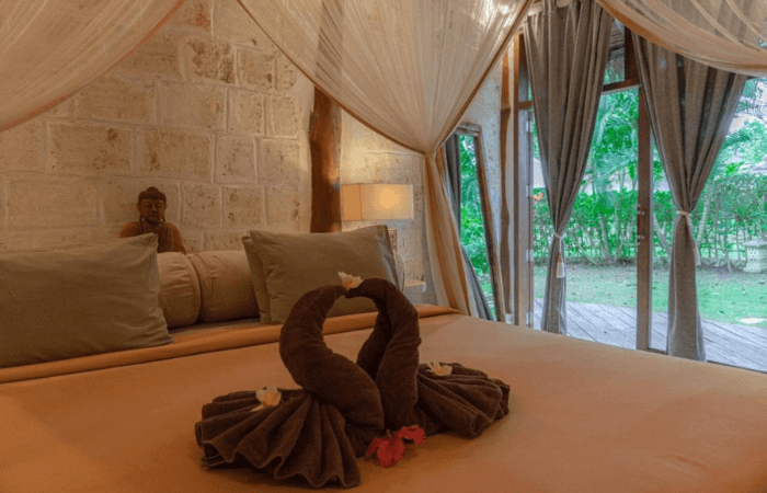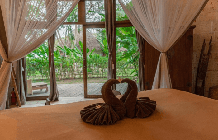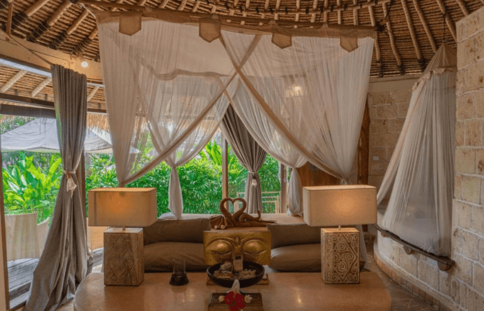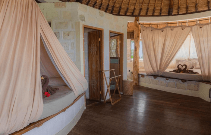 Les chambres et bungalows de La Joya Balangan sont conçus dans un style tropical chic. Chaque hébergement offre un espace intime, une décoration artisanale et un accès direct aux jardins luxuriants. Certaines chambres bénéficient d’une superbe vue sur l’océan Indien.