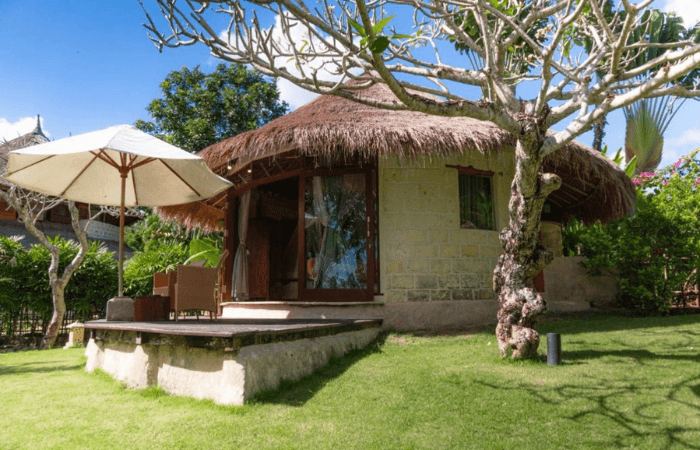 Situé sur les hauteurs de la plage mythique de Balangan, La Joya Balangan est un resort de charme où l’authenticité balinaise se mêle au confort moderne. L’établissement séduit par son architecture en matériaux naturels, ses bungalows au toit de chaume et son atmosphère paisible, idéale pour se ressourcer.