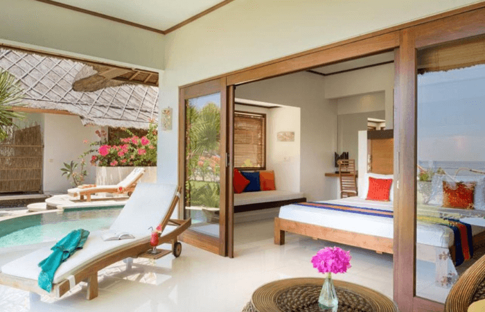 Le Resort propose 11 bungalows au style balinais raffiné, dont deux avec piscine privée. Les hébergements Garden Bungalow, Beachfront Bungalow, Beachfront Room with Pool offrent une décoration soignée, terrasses ombragées, douches à effet pluie, vues sur le jardin ou la mer, et accès Wi-Fi gratuit.